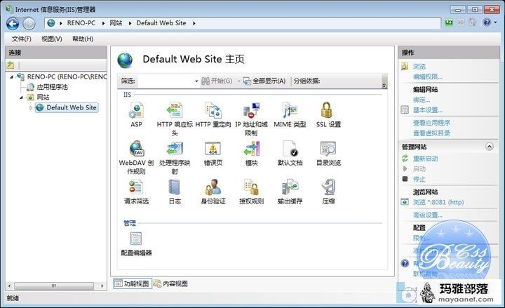 七、配置IIS7的站点。 单击右边的 高级设置 选项,可以设置网站的目录。
